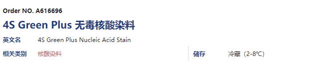 4S Green Plus 核酸染料是一种无毒的和非致癌的新型核酸染料,可替代 EB(溴化乙锭)用于检测琼脂糖凝胶中的核酸。